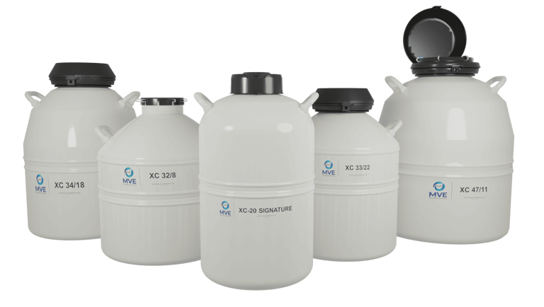 Las series de contenedores (dewars) de aluminio XC (Extra Capacity), diseñadas específicamente para criadores que necesitan almacenar material genético (semen, embriones u óvulos) de forma segura y eficiente.
